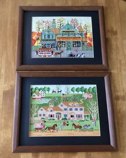 2 Vintage Wysocki Cross Stitch Needlework. 20@ By 16”$100Upland, CA