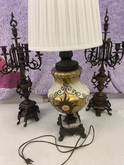 Lámpara Más Dos Candelabros de Bronce Antique.$650Miami, FL