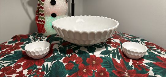 White Milk Glass Thumbprint Bowl With Candlestick Holders$75Melbourne, FL