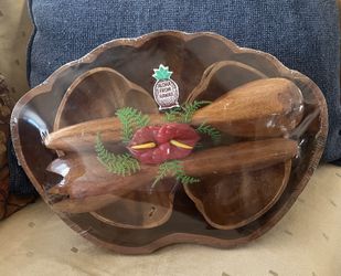 Vintage Hawaiian wood salad serving bowls and spoons 7 pieces. Still Sealed. $26Morro Bay, CA