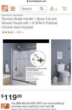 Rumson Single-Handle 1-Spray Tub and Shower Faucet with 1.8 GPM$70Queens, NY