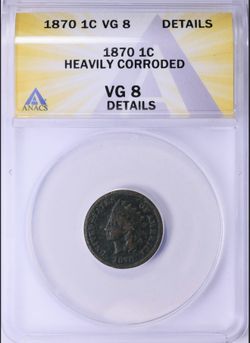 🪙 1870 Indian Head Cent – ANACS VG8 Details$65Irvine, CA