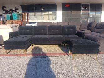 Black & Gold Sectional W/ Ottoman! Delivery Available!$450Dallas, TX