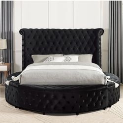 BLACK VELVET “ROUND” UPHOLSTERED KING SIZE BED / CAMA NEGRA REDONDA KING SIZE$680Stockton, CA