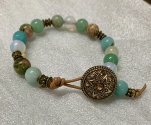 Jade, Moonstone, Jasper, & Leather Bracelet $15Visalia, CA