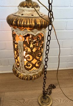 Vintage Cream/Gold Hanging Ceramic Light - 9" Diameter x 21" Tall$50Irvine, CA