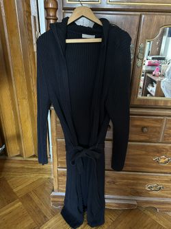 Black Ribbed Knit Hooded Cardigan Dress with Belt$30New York, NY