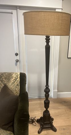 Antique 6 Ft Carved Wood Floor Lamp With Linen Shade$250Los Angeles, CA