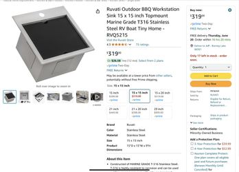 Ruvati Outdoor BBQ Workstation Sink 15 x 15 inch Topmount Marine Grade T316 Stainless Steel RV Boat Tiny Home And Pfister Stellen Bar Faucet$250Bonney Lake, WA