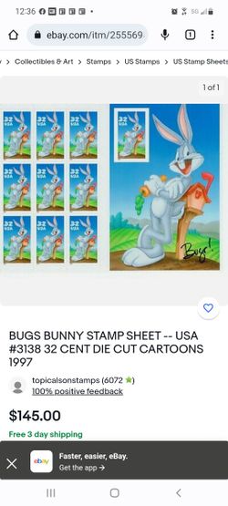 1997 Bugs Bunny $.32 Cent USA Stamp Booklet.$100Stockton, CA