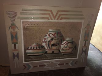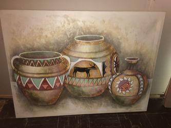 Native American pottery painting James eagles signed artist California Native American art painting pottery on canvas 40” x 50” Wall hanging$250Cleveland, OH