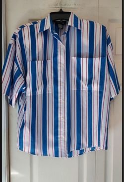 Nilani Patriotic Button Up Blouse Red White Blue Stripe Flag American Nautical 6$20Bardonia, NY