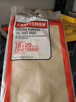 Craftsman General PURPOSE vac Dust Bags Fits 16 & 20 Gallon$8Grand Terrace, CA