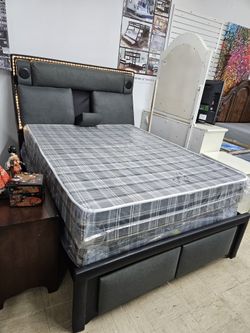 Open Box Queen Bed With Bluetooth Speakers And LED Lights $450Snellville, GA