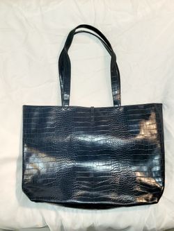 Saks Fifth Avenue Navy Faux Croc Leather Tote Bag Purse Travel 2022$20Atlanta, GA