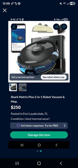 Shark Matrix Plus 2-in-1 Robot Vacuum & Mop. $250Fort Lauderdale, FL