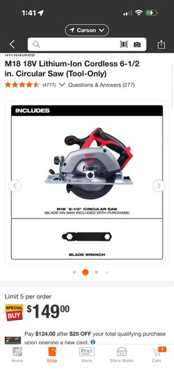 M18 18V Lithium-lon Cordless 6-1/2 in. Circular Saw$0Torrance, CA