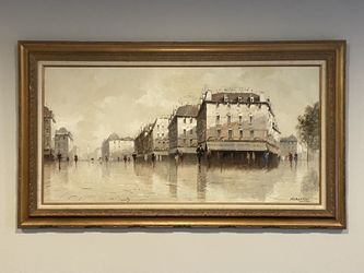 Maud Maraspin Oil on Canvas, "View of France” Framed Vintage Antique 56 X 32$90Aurora, IL
