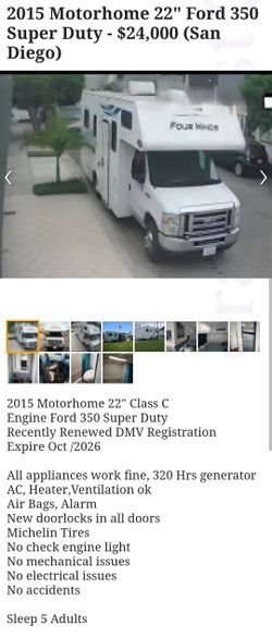 2015 Ford 350 Super Duty Motorhome Recreational Vehicle RV$24,000164k milesSan Diego, CA