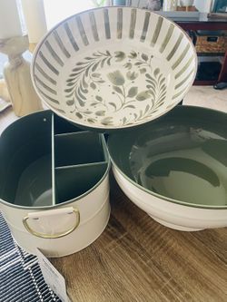 Set of serving bowls and Caddy-brand New - Vanilla and Green Color$28Highland, CA