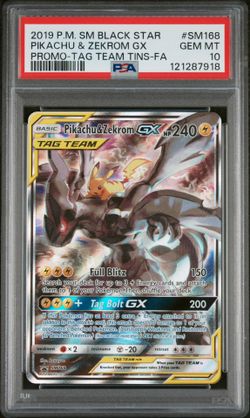 2019 Pokemon SM Black Star Pikachu & Zekrom Gx Promo Tag Tins SM 168 PSA 10$1,300Canoga Park, CA