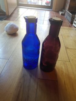 2 Milk Bottle Vases Blue And Purple $10Denver, CO