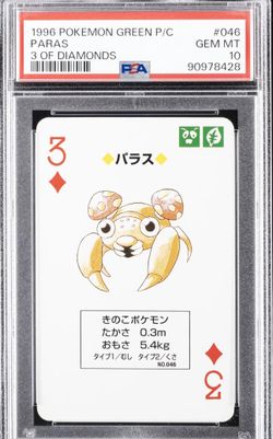 1996 POKEMON GREEN VERSION PLAYING CARDS 3 OF DIAMONDS #046 PARAS PSA 10$1Covina, CA