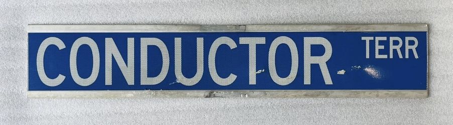 Vintage Retired Conductor Terr Double Sided Blue Reflective Street Sign 48" X 9”$125Gilbert, AZ