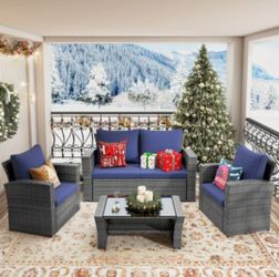4pcs Outdoor Patio Furniture Set, Outdoor Sectional Sofa With Tempered Glass Coffee Table And Cushions$350Miami, FL