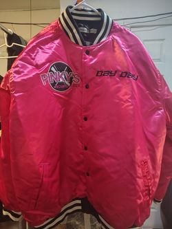 bright pink satin varsity jacket is a Headgear Classics "Pinky's Records Movie Satin" bomber jacket.$150Tolleson, AZ