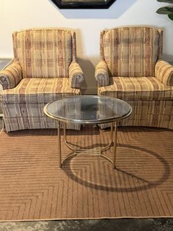 2 Vintage Mid Century Ethan Allen Traditional Classics Tweed Plaid Skirted Tufted Armchairs$400Phoenix, AZ