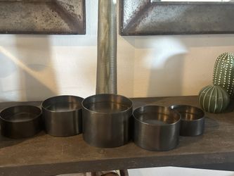 New Crate & Barrel Links Dark Pewter Centerpiece 5 Link Cylinder Pillar Candle Holder$35Phoenix, AZ