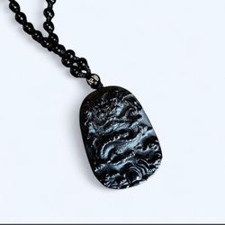 Carved Black Obsidian Dragon Pendant Necklace – Mala Bead Necklace – Statement Piece$75West Covina, CA