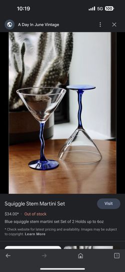 Vintage Surrealist Blue Swivel Stem Hand blown Martini Glasses X2$25Simi Valley, CA