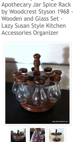 Apothecary Jar Spice Rack by Woodcrest Styson 1968 - Wooden and Glass Set - Lazy Susan Style Kitchen Accessories Organizer$30Oceanside, CA