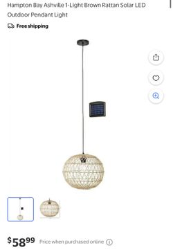 Hampton Bay Ashville 1-Light Brown Rattan Solar LED Outdoor Pendant Light$25Tampa, FL