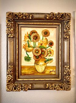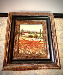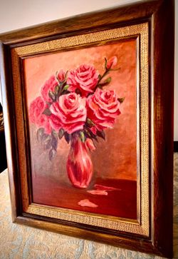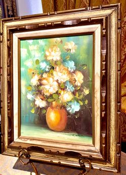 Beautiful original signed oil painting, Flowers; H23/16xW19/12inch Lbs 3.7; Wood framed Item# 557 Lbs 3.7$85Chandler, AZ