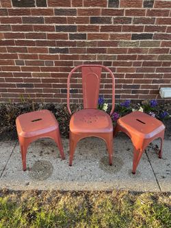 Industrial style metal chair and stools$30Skokie, IL