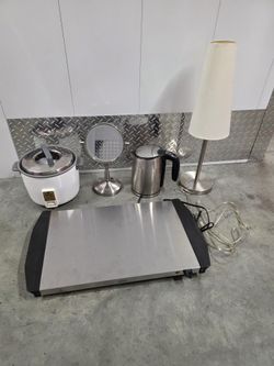 $45 for All, Lot Of (5) Household Electric Kettle, Flat Panel Griddle, Rice Cooker, Mirror, Lamp$45Los Angeles, CA