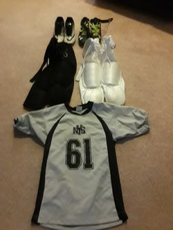 GENTLY USED SCHUTT YOUTH FOOTBALL SHOULDER PADS, 2PAIRS PANTS, CLEATS AND NYS JERSEY$100Santa Rita, AZ