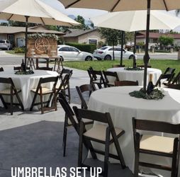 Umbrellas chairs linens tables$4,720Fullerton, CA