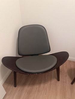 Grey Leather And Espresso Wood Winged Chairs$100Murrieta, CA