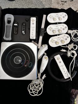 3 Wii Classic Controllers, 2 Wii Controllers With 2 Nunchucks And Wheel, Dj Hero Wireless Controller Accessory$50Fairview Heights, IL