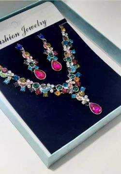 Beautiful bright Multi-color Rhinestone Necklace, Earrings, Chunky, Silver Tone$28Cincinnati, OH