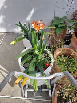 White Ceramic Pots With Orange Clivia Lily Plant$50Fountain Valley, CA