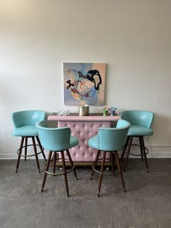 Vintage Pink Vinyl Bar And Aqua Barstools (4) $2,500Baldwin Hills, CA