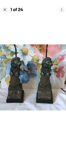 Pair of Mid Century Lion Rampart Table Lamps painted Bronze Finish/Lamp Shades $140Mesa, AZ
