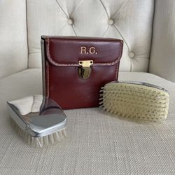 Vintage English men's chrome hair or clothes brush, travel toiletry grooming brush with leather case. $40Beaverton, OR