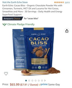 Earth Echo: Cacao Bliss - Organic Chocolate Powder Mix with Cinnamon, Turmeric, MCT Oil and Lucuma for Hot Cocoa, Smoothies and More - 30 Servings - D$25Humboldt, TN