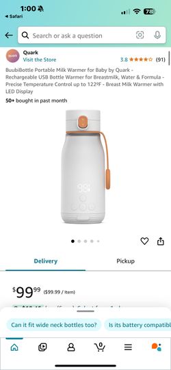 BuubiBottle Portable Milk Warmer for Baby by Quark - Rechargeable USB Bottle Warmer for Breastmilk, Water & Formula - Precise Temperature Control up t$88Buena Park, CA
